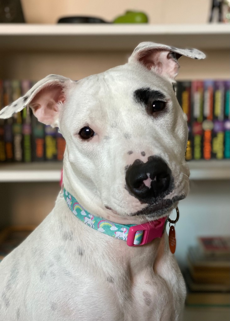 Tofu is a writing assistant and rescue pibble-mix who just so happens to be Keli’s dog. She has been assisting since 2021 and helps around the office primarily by begging for pets. When she is not working, she enjoys going for car rides, eating scraps of paper, and licking gobs of peanut butter off spoons.